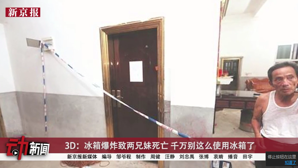 8歲男童小智(化名)和他6歲的妹妹小花(化名)在睡夢(mèng)中再未醒來,被發(fā)現(xiàn)時(shí),身上滿是燒傷痕跡。而房?jī)?nèi)的冰箱上半層已被燒掉,頂部被炸飛,鏈接冰箱的線路燒毀,家人猜測(cè),事故是冰箱突然爆炸引起的。如果是冰箱引起,好好的怎么會(huì)爆炸呢?
