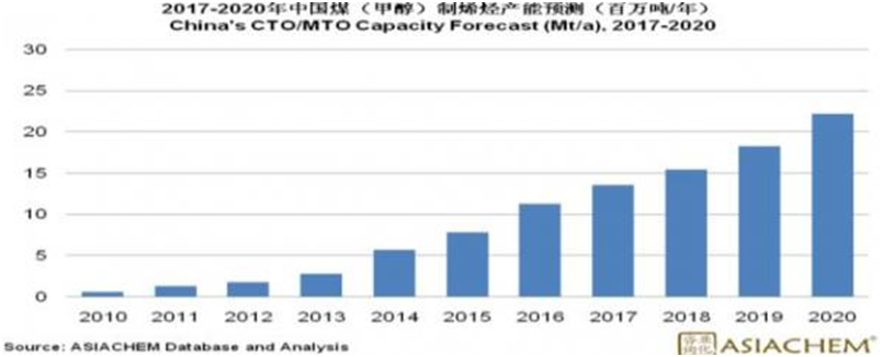 從第一套大型示范裝置投產(chǎn)(2010年12月投入運(yùn)營(yíng),2011年1月有商品量出來(lái))至今,短短6年的時(shí)間,中國(guó)煤制烯烴規(guī)模迅速擴(kuò)張,占比超過(guò)20%。