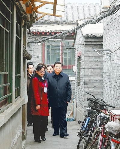 這是習(xí)近平在東城區(qū)雨兒胡同察看大雜院居民生活。