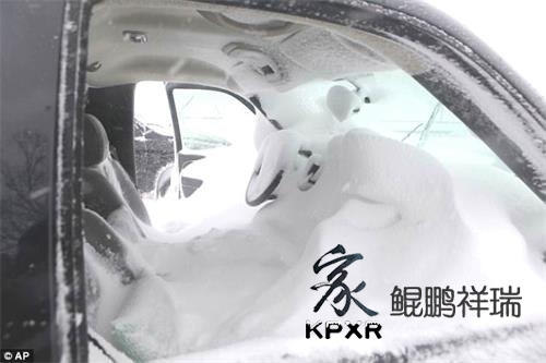 覆蓋的情形,因?yàn)榇皯?hù)未關(guān),整個(gè)車(chē)內(nèi)都被積雪所覆蓋。